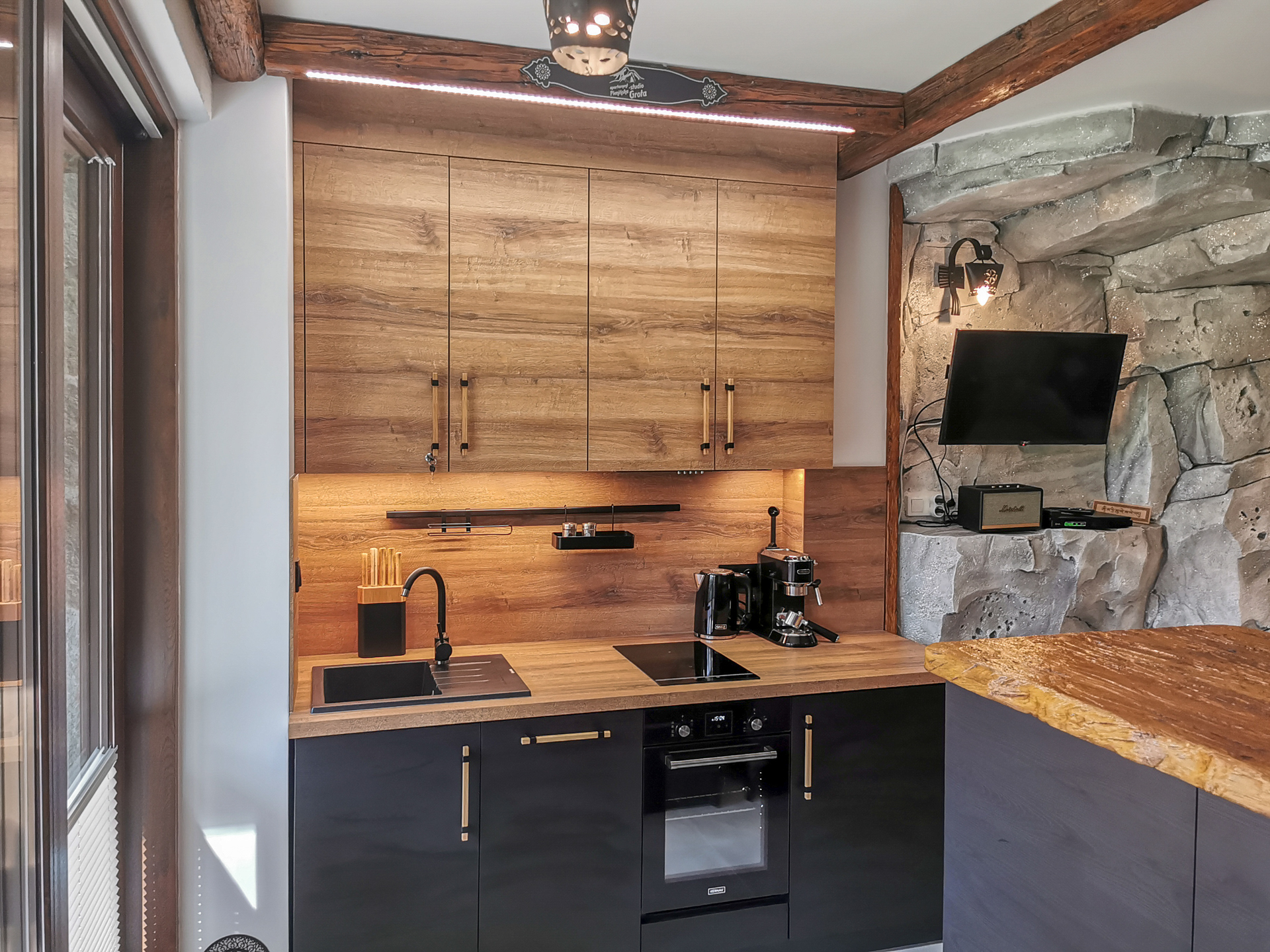 Aneks kuchnny: Pełne wyposażenie premium – zmywarka, piekarnik, płyta indukcyjna, toster oraz ciśnieniowy ekspres do kawy (na kawę mieloną i saszetki).